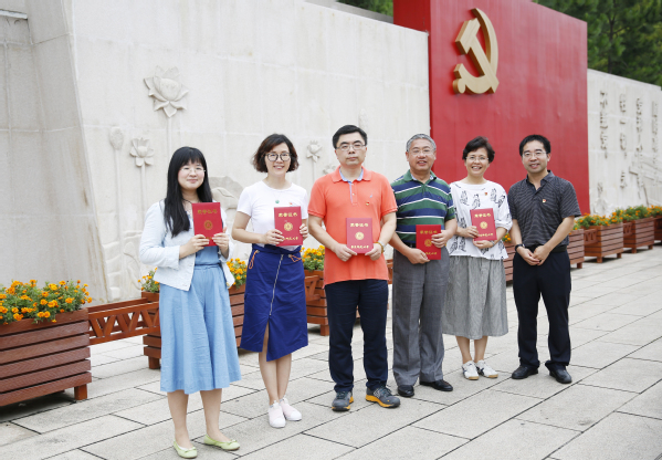 随后,学院党委“七一”表彰会在南湖革命纪念馆北侧的宣誓台前举行,表彰会由学院党委副书记兼副院长庄瑜主持。在学院党委书记俞黎阳带领下,党员同志们面对鲜红党旗庄严郑重地举起右手,重温了入党誓词,牢记自己肩负的责任和使命。