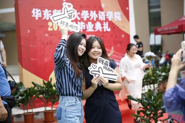 中午十一点,“毕业红毯秀”准时开始。毕业生们选好自己喜欢的道具,或身穿帅气礼服,或精致典雅的小礼裙,或是青春洋溢活泼可爱的休闲服,或是学位服,走到红毯尽头,纷纷拿起签字笔,在舞台的红色背板上签下自己的名字,同时合影留念,记录这珍贵的时刻,绚烂的绣球花映衬着毕业生激动和喜悦的笑脸。在红毯边上,毕业生的好友、家长等也都纷纷举起手机相机,纪念这一刻。而红毯尽头,拷贝漫画