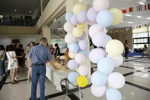 ,参加了精心为毕业生们准备的冷餐会。冷餐会场用气球装饰作为合影背景,长桌上摆放着今年毕业季的绣球花。大家珍惜着每一刻与老师、同学相聚的时间。同学们也凭借着手中的那张绣球花号车票,在学院领取了一份神秘的毕业礼品——拷贝漫画
