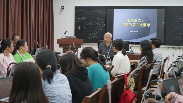 在两个多小时的讲座中,郑教授从梳理白银时代和现代主义等概念入手,进而阐明象征派、阿克梅派和未来派之间的关系与各自的诗学追求,娓娓道来,不经意间便将俄诗第二次繁荣的盛大图景勾勒了出来;与此同时,郑教授还以声情并茂、形神兼备的吟诵,再现了白银时代诗歌在原文和译文中的美之所在,让现场听众感受到了不同诗人的个性魅力!