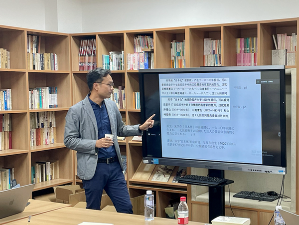 讲座过程中,尤海燕老师将《日本文学史序说》的原文与译本,以及讲座相关的研究书籍带至现场供大家传阅,进一步提升了讲座的讲解效果和学术氛围。分享环节结束时,尤老师对讲座内容进行了总结。她认为在加藤周一文学观中,“文学”具有多种不同面向,这种宽阔的视野和敏锐的洞察力打破了文学研究注重局部而不看整体的传统,为文学研究者提供了有益的观念性指导。谭老师本次的讲座对参与师生都有着深远的启发。