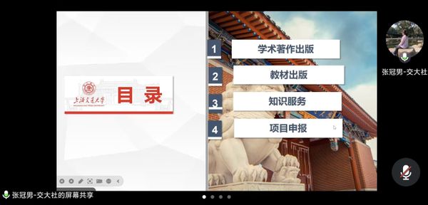 张冠男老师从“学术著作出版、教材出版、知识服务和项目申报”四个方面为全体党员提供了宝贵的学术经验和职业指导。在学术著作出版方面,张老师从上海交通大学出版社的实际经验出发,指出了选题、书名、体例等一些规范性问题的注意要点,并分享了国内外出版流程的细节和编辑工作的严谨性。在教材出版方面,张老师逐一介绍了各种教材形式以及教材编写的注意事项,并向大家呈现了新时代数字教材的特点和优势。在知识服务方面,张老师通过课程出版、平台建设和学术培训的具体案例,强调了在“新文科”背景下外语专业转型的重要性和可行性。在项目申报方面,张老师首先细致为大家讲解了“中华学术外译项目”和“国家社科后期资助项目”,接着根据以往的立项的成功案例总结了相关细节经验,并分析了两个基金的共同特点和资助学科分布。