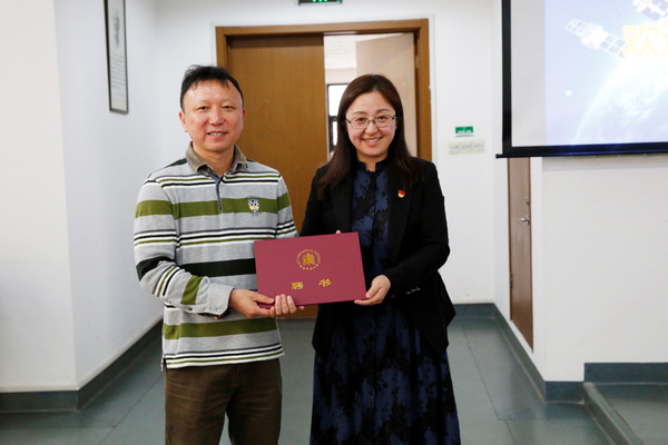 党委书记闫露在总结时,首先代表学院全体党员向为国家卫星事业奋斗的科技工作者表达了敬意,她说,我们为每一次卫星的升空而热血沸腾,更为科技工作者日复一日、年复一年的艰苦卓绝的科技攻关而感动。董瑶海总设计师在37岁的年纪已担起风云三号副总设计师的重任,他的青春用于无私奉献、钻研科学,是我们全体党员的榜样。我们要将风云精神、航天力量请进课堂,促进课程思政建设,希望全院师生党员发挥语言优势,向世界传播风云精神,传播大国重器的风范,讲述好新时代的中国故事。随后,闫露代表学院党委向董瑶海总设计师颁发拷贝漫画