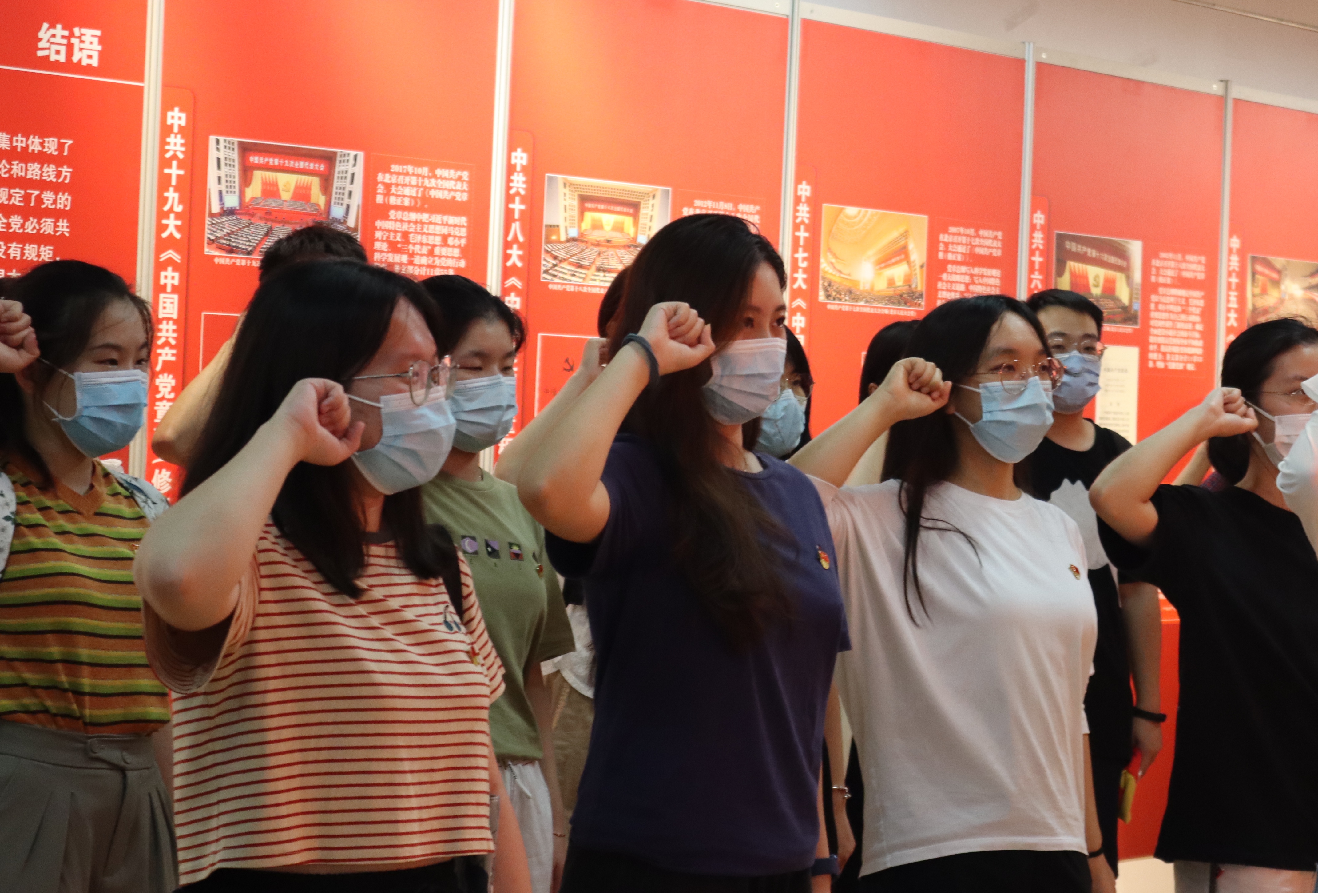 志愿者讲解完展厅内容后,同学们热烈鼓掌。随后,在老师的带领下,同学们在展厅的党旗前集体宣誓,重温入党誓词,同时更加坚定了响应习总书记要求认真学习党章、自觉加强党性修养的决心,以实际行动迎接党的二十大胜利召开。
