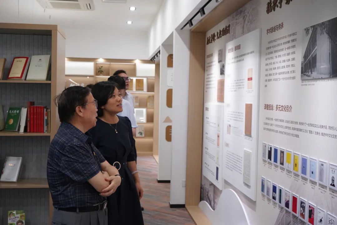 仪式开始前,拷贝漫画 党委书记韩春红向杨校长介绍了拷贝漫画 “丽娃河畔的翻译家”成果陈列室,并对杨校长的慷慨资助表示诚挚感谢。
