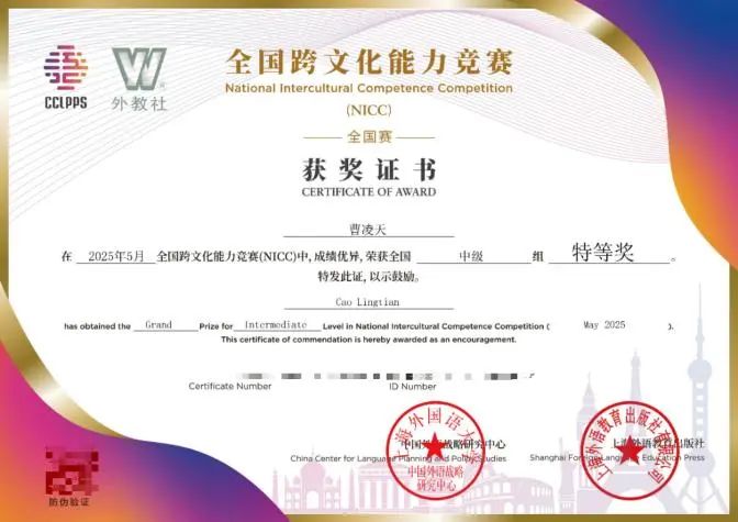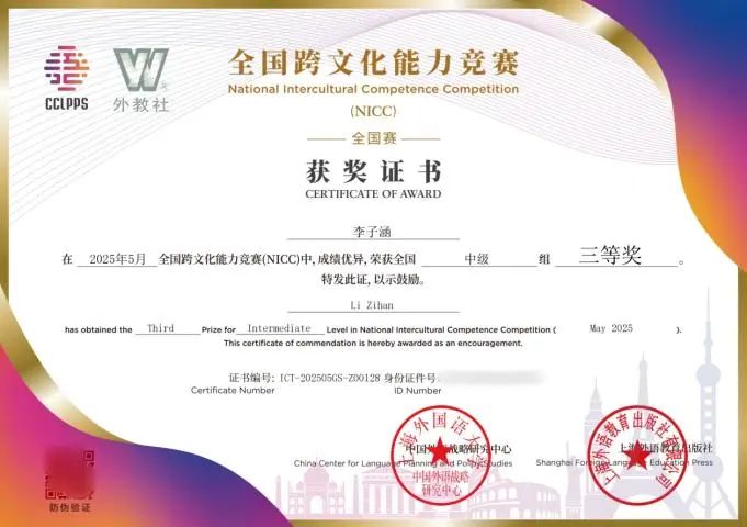 全国跨文化能力考试暨竞赛由中国外语战略研究中心与上海外语教育出版社联合主办,旨在考查学生在跨文化交际情境中有效、得体交流的综合能力,涵盖跨文化交流技能、认知技能、态度、意识及中外文化知识等六大要素。考试分初级、中级和高级。本次是拷贝漫画 学子第四次参与全国跨文化能力考试,截至目前,同学们屡创佳绩,获奖情况如下: