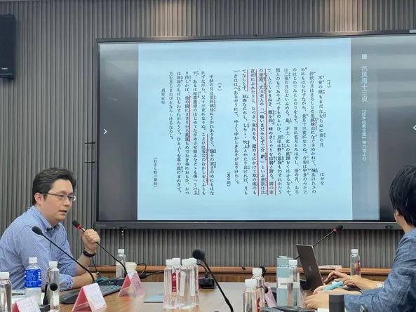 讲座伊始,陈可冉老师首先介绍了他关注的一个问题——日本古典文学诞生的契机。他指出,文学的重要功能之一即为社交工具,文学创作往往诞生于文人之间的交往互动之中。除文人聚会之外,自然风物的感发亦是促成文学生成的关键因素。作为例证,陈老师引用了平安时代权臣藤原道长于宽仁二年(1018)十月十六日所作和歌:“この世をば 我が世とぞ思ふ 望月の 欠けたることも 無しと思へば”。此歌吟咏于其第三女威子被立为中宫的庆贺宴席之上,而十月十六日正值月满之夜,道长借圆月象征自身权势之圆满,将个人权力的顶峰与自然界的满月意象巧妙结合。此一实例正切实体现了文学生成与社交活动、自然景物三者之间密切的关系。
