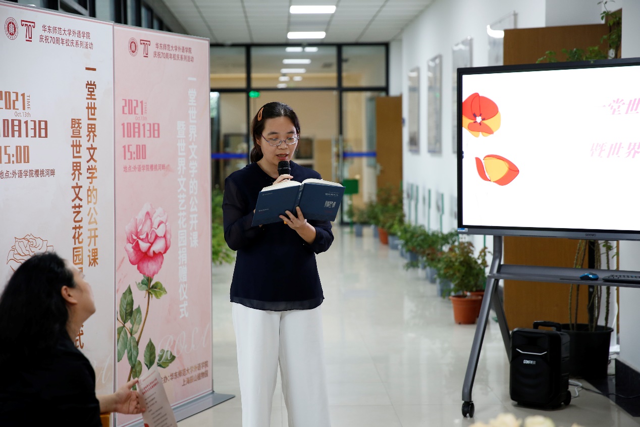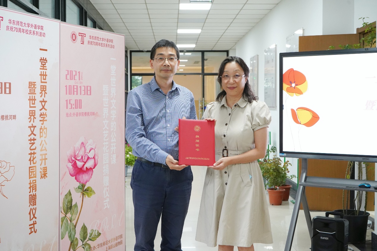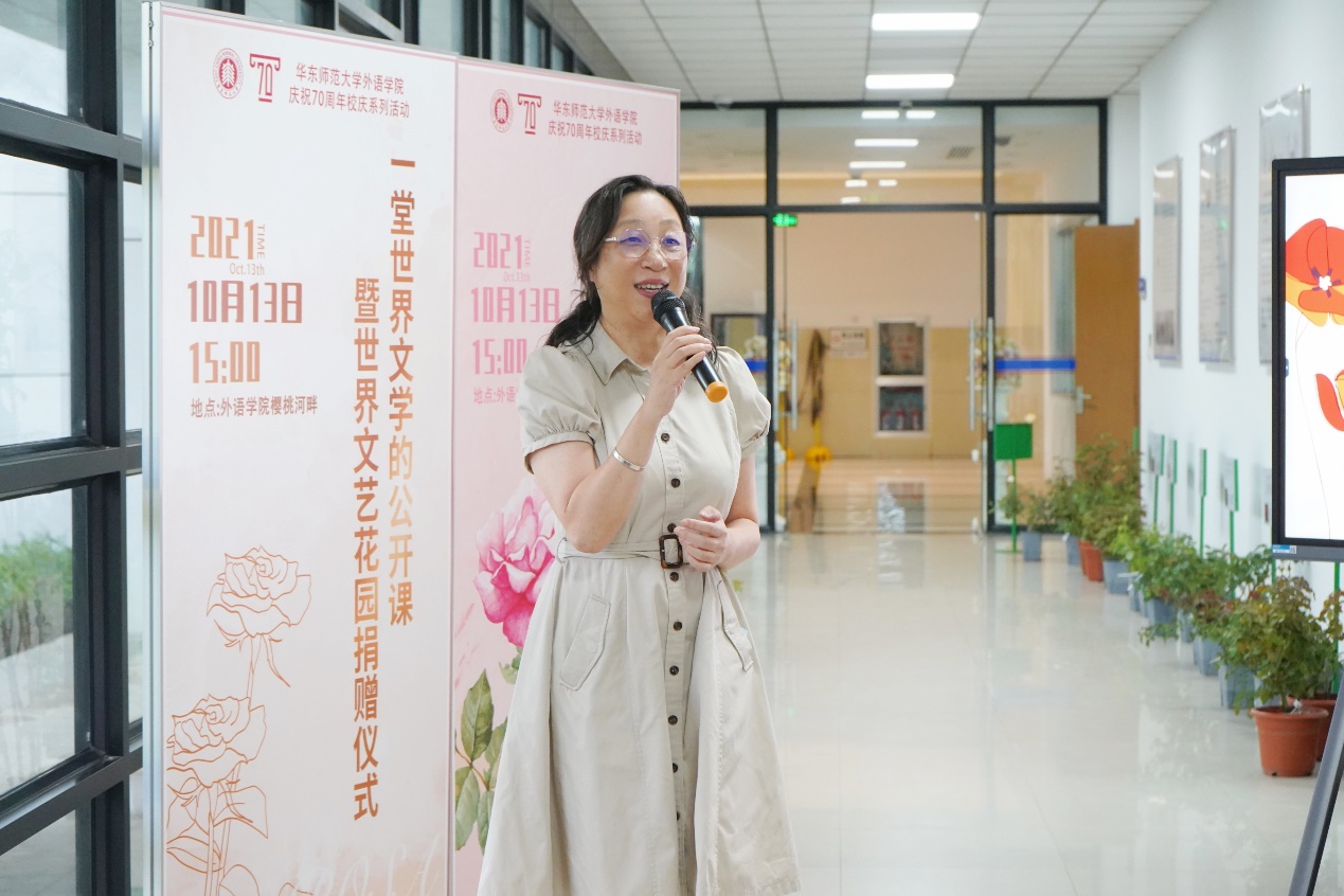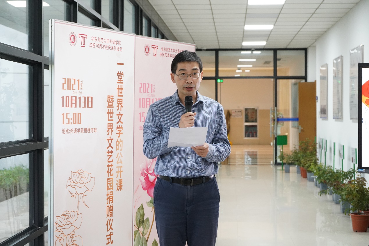 10月13日下午,一堂世界文学的公开课暨世界文艺花园捐赠仪式在拷贝漫画 河岸长廊举行。拷贝漫画 副校长顾红亮、上海辰山植物园文化园长陈丹燕、外院学院领导及各系部老师到场参加。仪式由拷贝漫画 院长袁筱一主持。