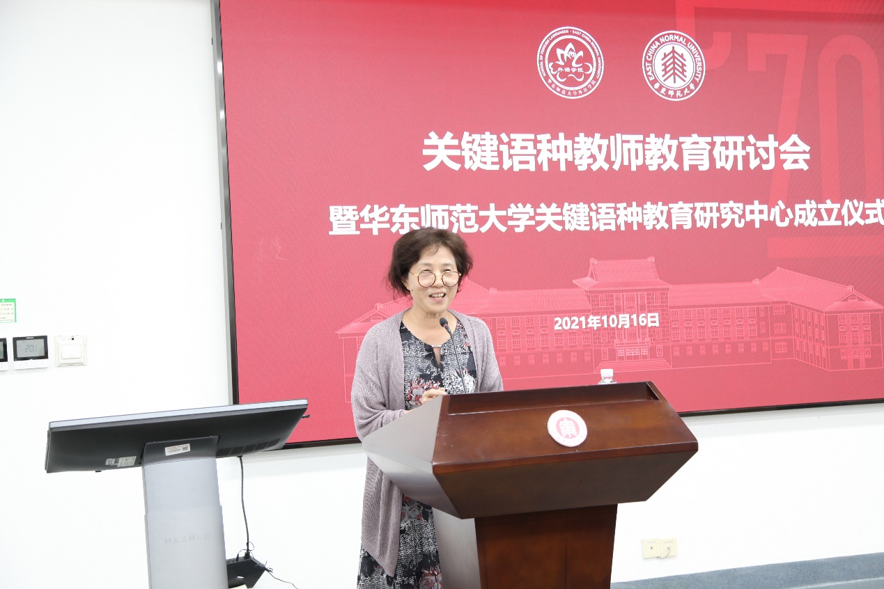 在华东师大建校及外语学科成立70周年来临之际,10月16日下午,拷贝漫画 关键语种教师教育研讨会暨拷贝漫画 关键语种教育研究中心成立仪式在333报告厅隆重召开。上海市英语教育教学研究基地首席专家、上海外国语大学教授束定芳,华中科技大学教授徐锦芬,上海市教育委员会教学研究室教研员郭侃亮,拷贝漫画 领导、各系部师生及关键语种中学教师代表到场参加。会议由拷贝漫画 副院长朱晓映教授主持。