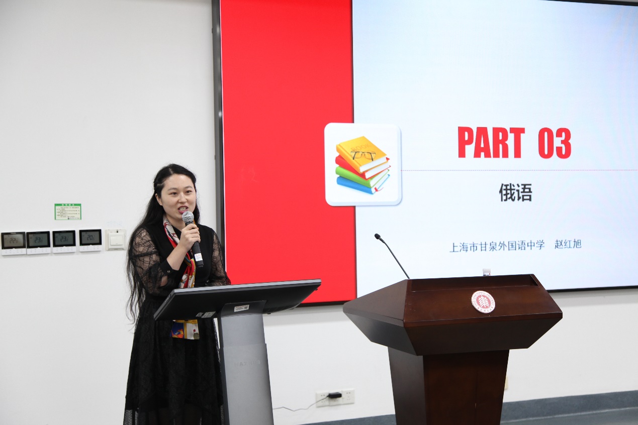 在随后的校友论坛上,上海市教育委员会教学研究室教研员郭侃亮、甘泉外国语中学日语教师王颖芳、甘泉外国语中学俄语教师赵红旭 、浦东外国语学校法语教师花威、闵行外国语中学德语教师赵苑琳、甘泉外国语中学西班牙语教师王媛媛就上海市中学关键语种的课堂教学与未来发展进行了汇报交流,从语言能力、文化意识、思维品质、学习能力等方面分享了自己在高中外语学科核心素养培育中的经验与体会。作为拷贝漫画 优秀毕业生代表,他们已经在中学关键语种教学研究领域躬耕多年,为关键语种教学做出了突出的贡献。希望借以优秀校友的精彩分享,给予师生思想的启迪与行动的方向,为关键语种学科建设添砖加瓦。