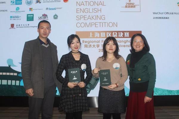 On Nov, 30th, the final of the 25th 21st Century Cup National English Speaking Competition Shanghai area was held in the hall of Yifu Building, Tongji University. After fierce competition, Wang Yan, a law major student, winning the grand prize((the highest award))gained access to the national final. Zhong Jiaqi, an English major student, was awarded the first prize.