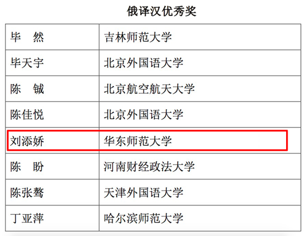 On October 17, 2023, the results of the 35th Han Suyin International Translation Competition were announced. Liu Tianjiao, a 2022 master degree student of the Department of Russian Language, won the Excellence Award of Russian to Chinese Translation with her solid Russian language skills.