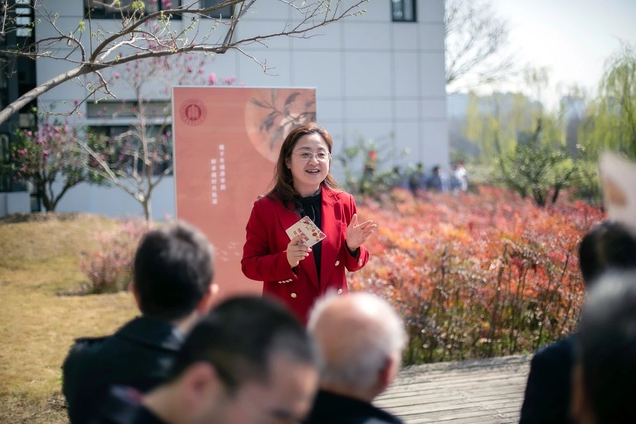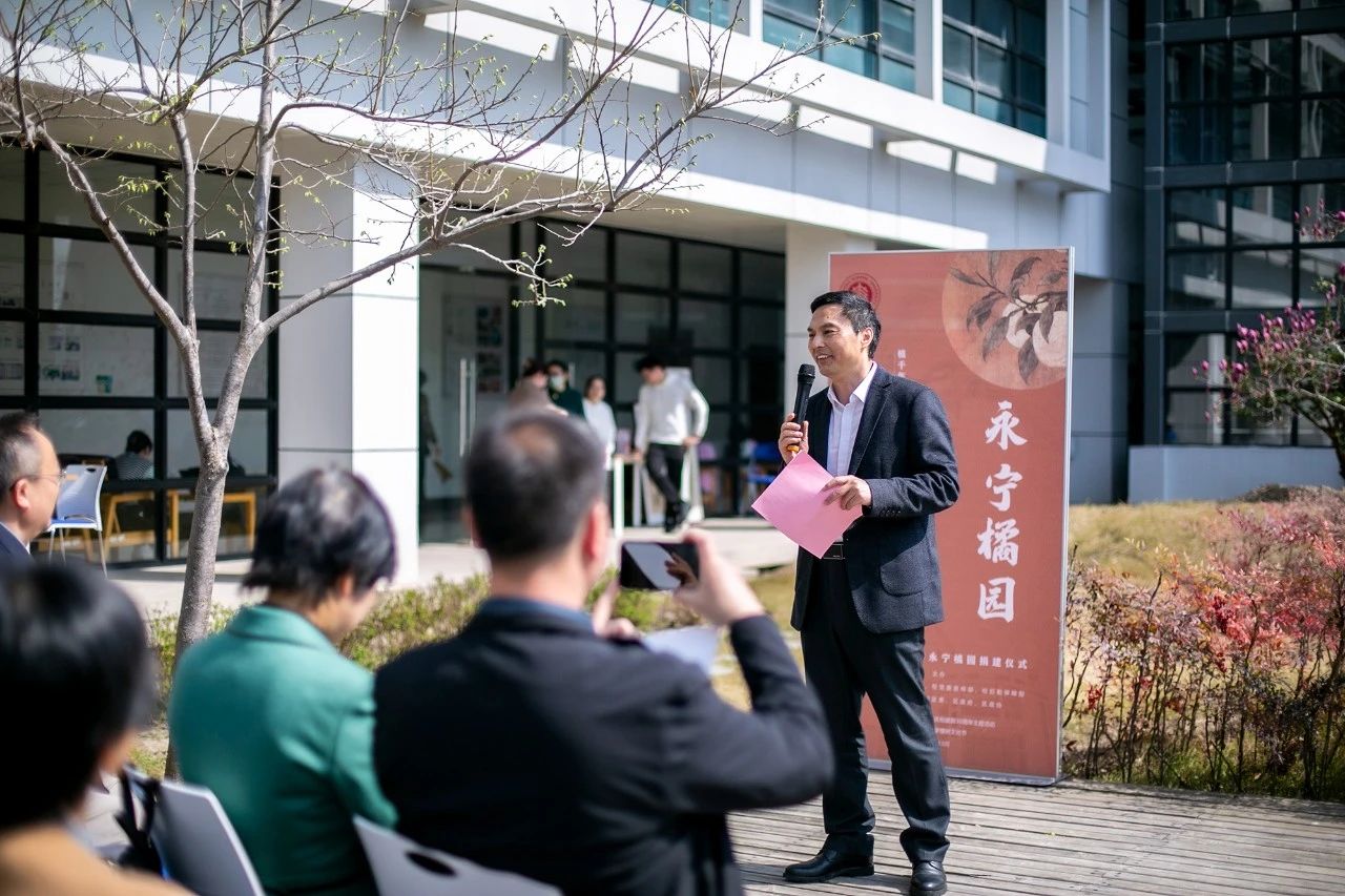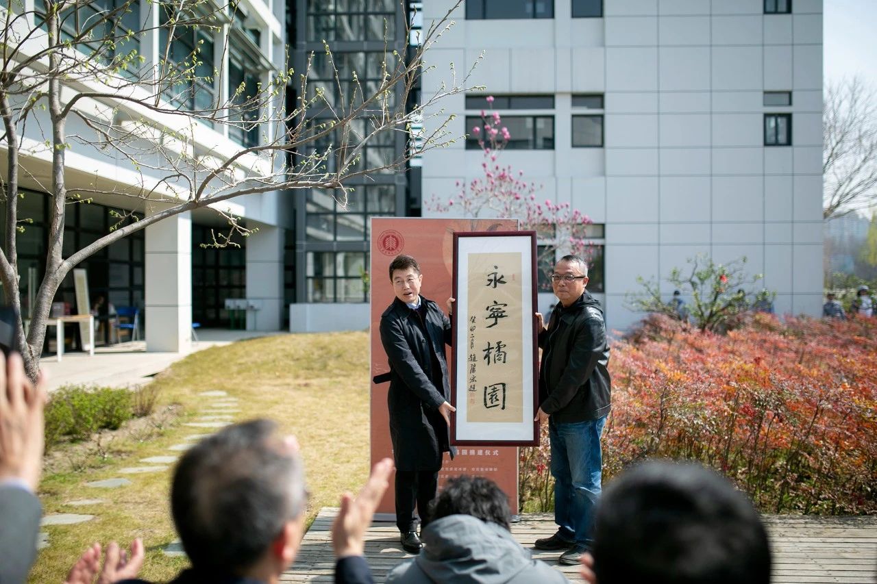 On the morning of March 10, 2023, a donation ceremony for the construction of the Yongning Orange Garden was held along the Cherry River bank beside the SFL Building on the ECNU’s Minhang campus. Wang Hui, Party Secretary of the Political Consultative Conference of Huangyan District, Taizhou City, Lei Qili, Vice President of ECNU, and heads of relevant faculties and departments including the School of Foreign Languages attended the event. Mr. Zhao Lihong, the famous writer and ECNU alumnus, inscribed the title of the Yongning Orange Garden.