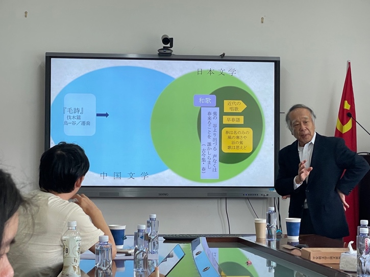 日本信州大学名誉教授渡边秀夫应邀做客聚学讲堂:《中日(和汉)比较文学研究的方法论》,由尤海燕老师主持。