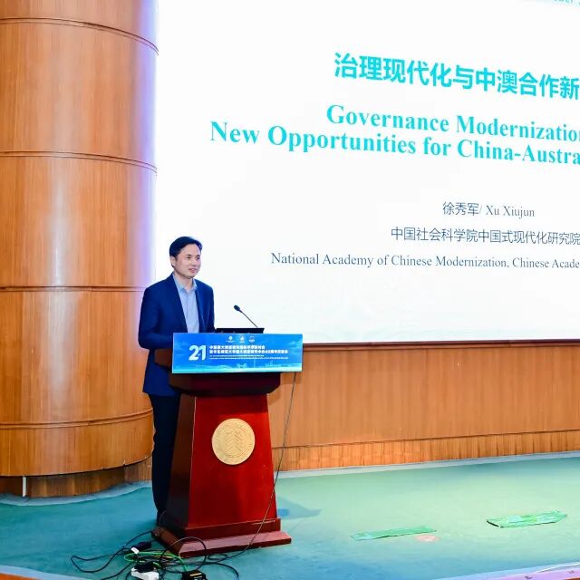 中国社会科学院中国式现代化研究院院长徐秀军在题为“治理现代化与中澳合作新机遇”的主旨报告中指出,通过机制建设、领域先行和多元交流,中澳双方在治理现代化领域的合作潜力巨大,能为双边关系开创广阔新机遇,共同应对全球性挑战。澳大利亚昆士兰大学的Maggie Nolan副教授对澳大利亚最重要的文学文献数据库AustLit做了详细阐释,指出数智时代对澳大利亚研究的赋能正在加强。