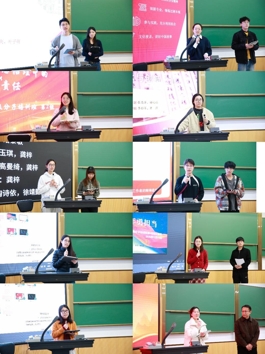 12月10日下午,培训班举办案例汇报与答辩展示环节。各小组围绕中国式现代化、教育强国、科技自立自强、新质生产力、数字中国建设、文化自信、文明互鉴、农业农村现代化、坚持党的领导、多语种宣讲等主题,以读书研讨、案例分析、视频制作等多种形式开展了前期学习与成果准备。在答辩环节,学员们结合所学理论,联系实际案例,进行了系统阐述与生动展示,体现出扎实的理论联系实际能力和良好的团队协作精神。拷贝漫画 特邀党建组织员侯敏跃教授,学院关工委成员、退休第一党支部书记丁兰兰老师,学术型研究生第三党支部副书记陈舒婷同学和本科生党支部组织委员兼纪检委员杜圣南同学担任评委,对学员们的案例汇报进行点评。