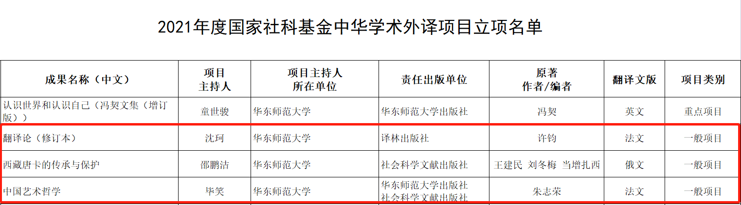 近日,全国哲学社会科学工作办公室公布2021年度国家社科基金中华学术外译项目立项名单,共有237个项目入选,其中重点项目16项,一般项目219项,期刊类2项。